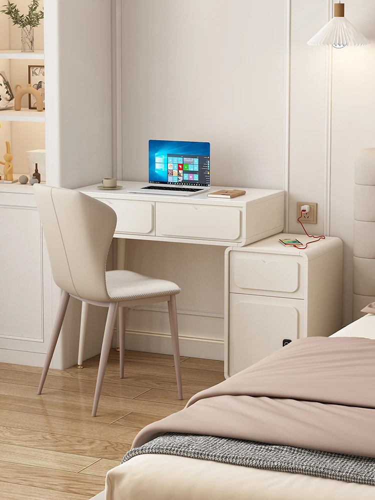 フランス風クリーム色の女子向けオールインワン学習デスク&ブックシェルフ - ピュアホワイト岩板使用、60cm・80cmの省スペースデザインでおしゃれと機能性を両立!