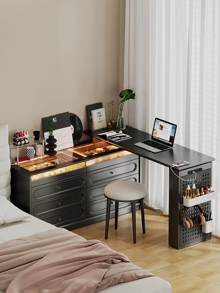小空間に最適!回転&拡張機能付き多機能ナイトテーブルと半囲いデスク - モダンでラグジュアリーな女の子のベッドルームにぴったり