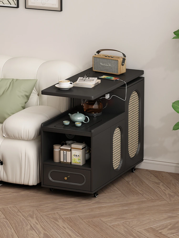 【2025年最新】リビング用多機能モバイルティーバー: ソファ横の仕切り収納&ティーテーブル、ケトル付き小型お茶セット