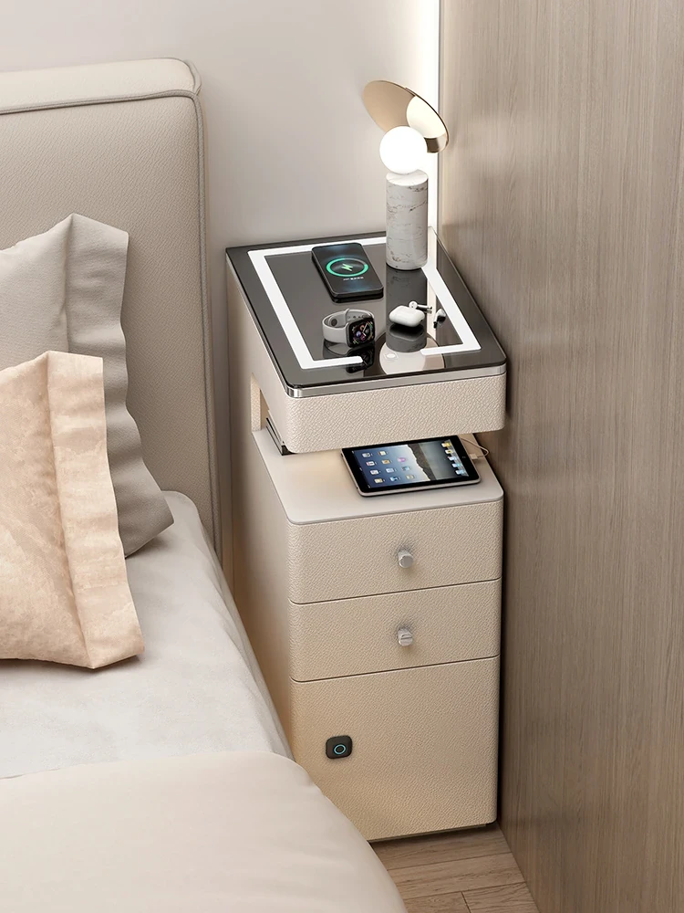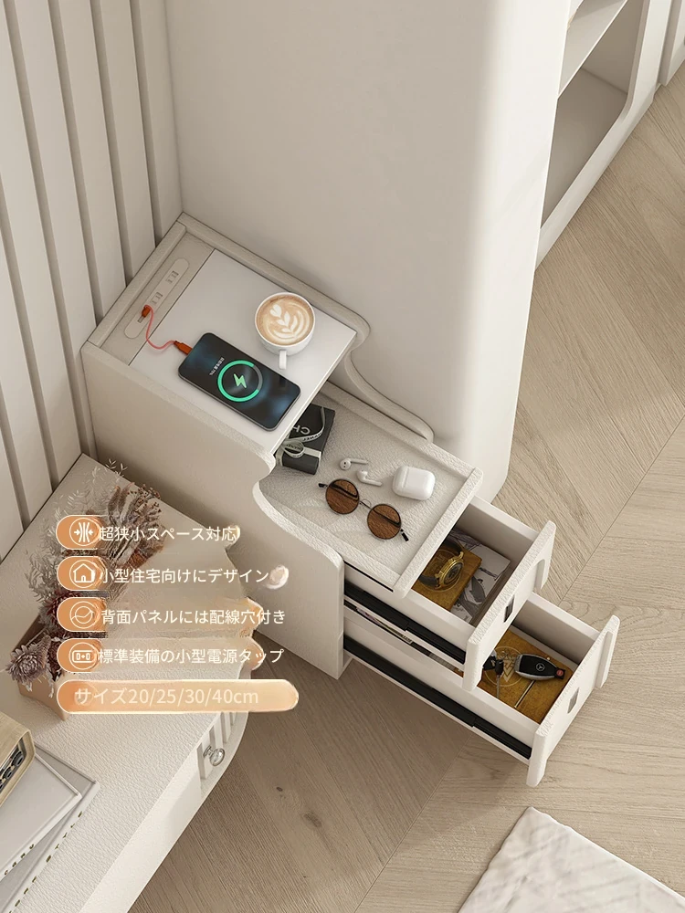 【売れ筋】クリーム風デザイン!25cm二層構造の多機能ベッドサイド収納キャビネット 〜 寝室に最適・鍵付きで安心収納 〜