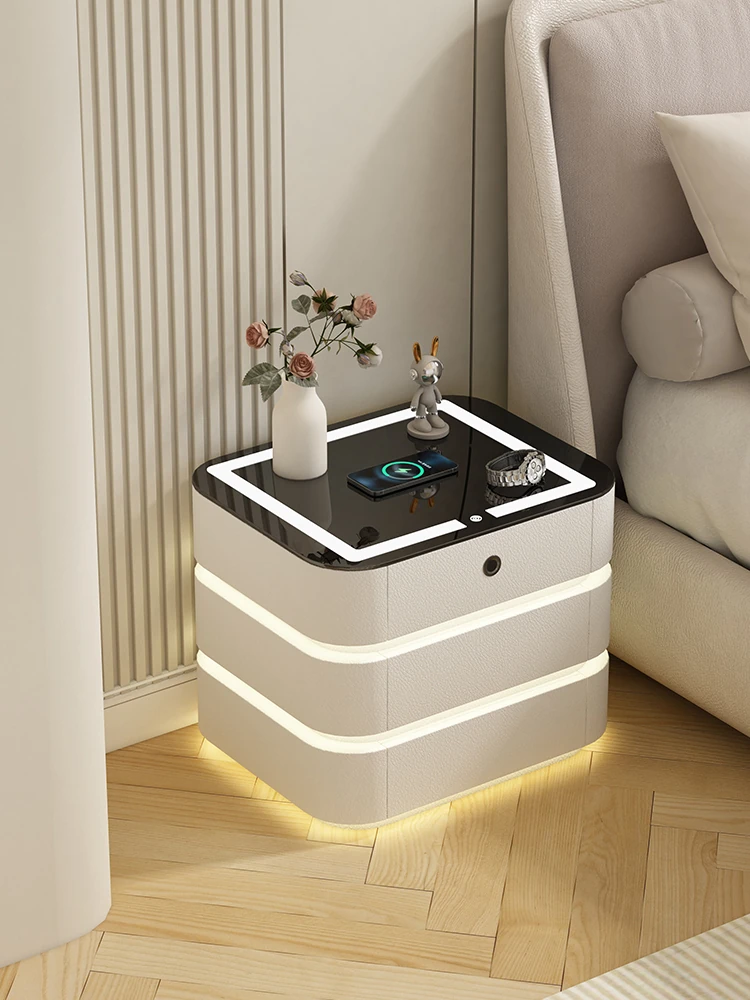 Trendy LED-Lit Nightstand - Modern & Chic Solid Wood Bedside Table, 40cm Compact Luxury for Stylish Bedrooms
