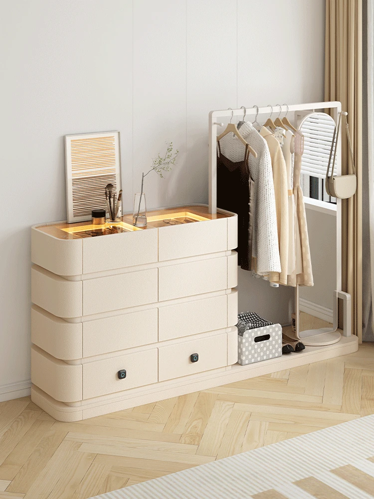 Content: Chic Multi-Functional Cream-Style Wardrobe Dresser – Perfect Bedroom Storage Solution with Coat Rack & Bedside Cabinet