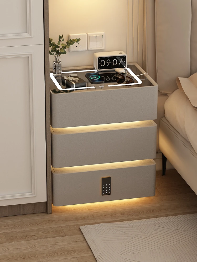 Sleek and Smart Multi-Functional Nightstand with Rechargeable Storage for Small Bedrooms, Minimalist Design with Glass Top 40