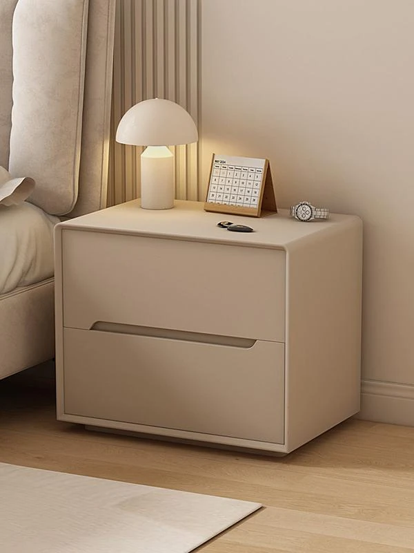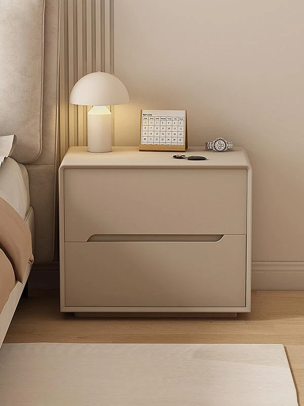 French Provincial Small Apartment Bedside Cabinet with Sintered Stone Top - Creamy Aesthetic Bedroom Storage and Decor Solution