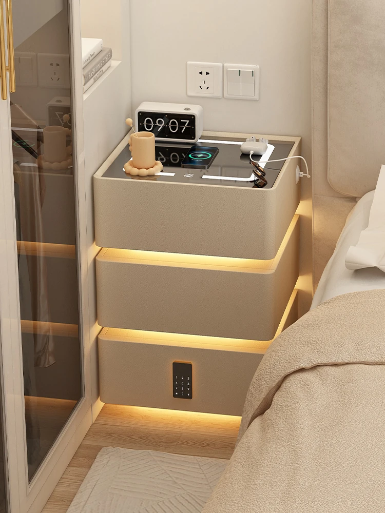 Luxurious Khaki Slim Bedside Cabinet for Small Spaces - Smart Wireless Charging Bedside Table with Narrow Design for a Modern Touch