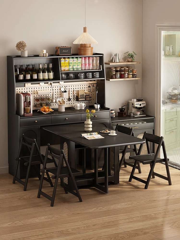 Sleek Italian-Style Black Dining Table with Built-In Cabinet - Space-Saving, Multi-Functional Folding Set for Small Homes