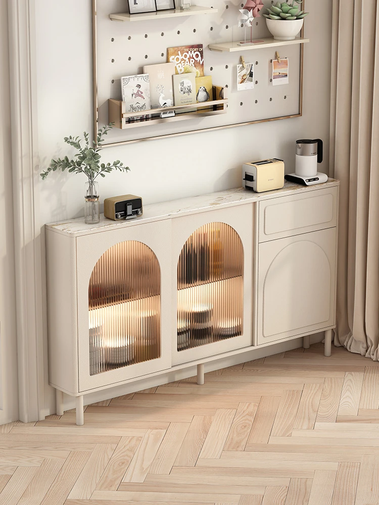 Italian Marble Sideboard: Modern Luxury Entryway Cabinet & Glass Door Bar for Dining Room – Sleek Nordic Design Tea Cabinet