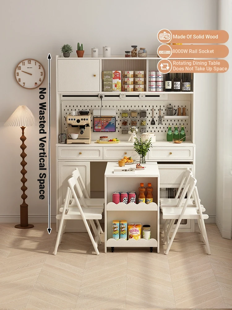 Japanese-Style Rotating Solid Wood Dining Table with Side Cabinet and Tall Cabinet Combo – Perfect for Small Homes, Living Room Space-Saver, Wall-Mounted Wine and Storage Cabinet.