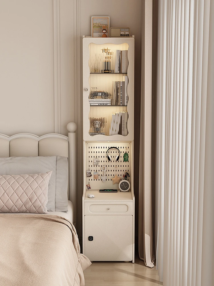 Compact Smart Nightstand for Small Bedrooms - Wireless Charging, Fingerprint Lock, Dust-Proof Glass Cabinet with Pegboard, 40cm Narrow Design