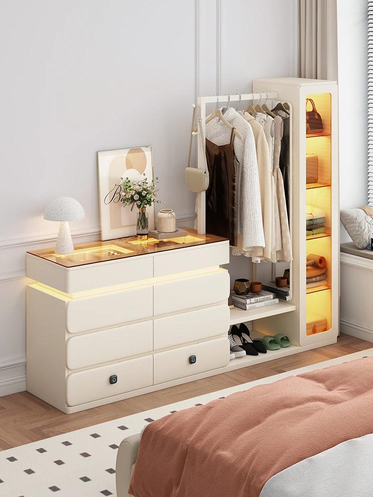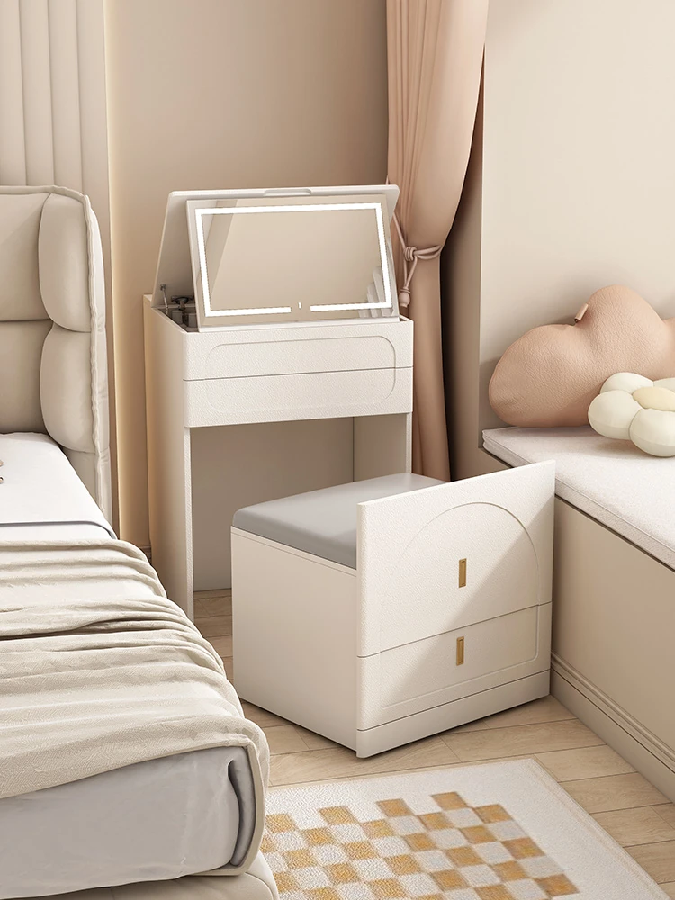 Creamy Wind Bedroom Bedside 50cm Wide Flip-top Dresser & Vanity Combo - Smart with Light, Multipurpose Chest of Drawers for Stylish Storage