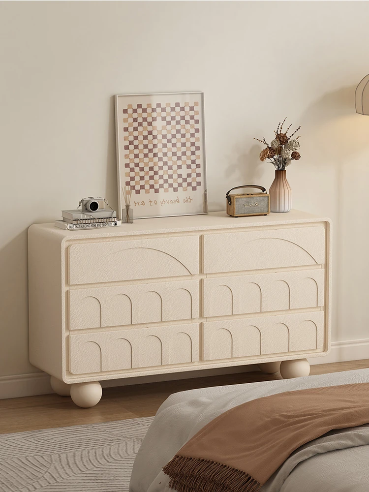 French-Style Cream Dresser & Vanity Combo: Elegant Bedroom Storage Cabinet and End-of-Bed Unit, Perfect as a Stylish Living Room Display against Wall, Space-Efficient Design