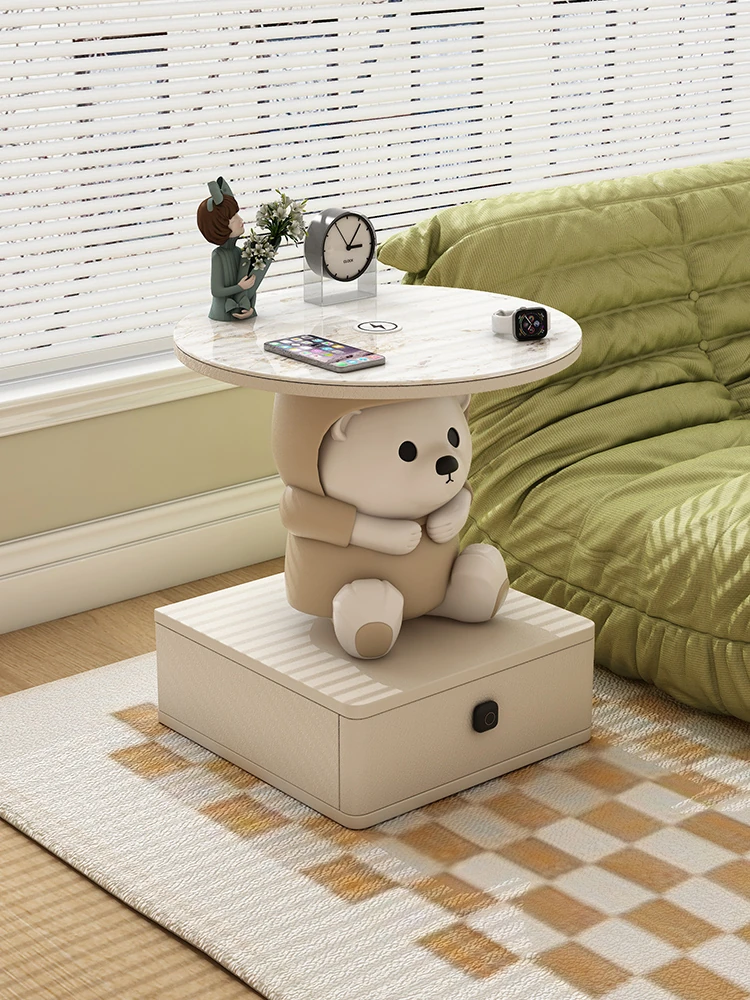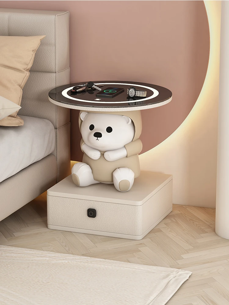 Nordic Japanese Style Wireless Charging Nightstand - 40x40x50cm Elegant Cream Multifunctional Bedside Table with Creative Design