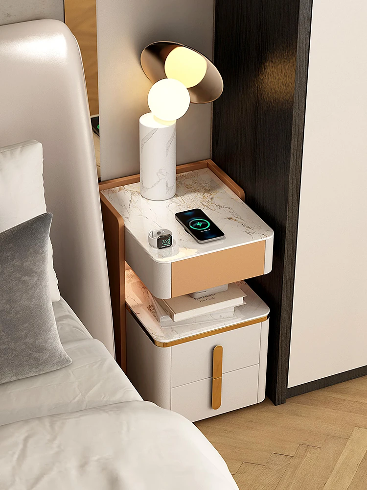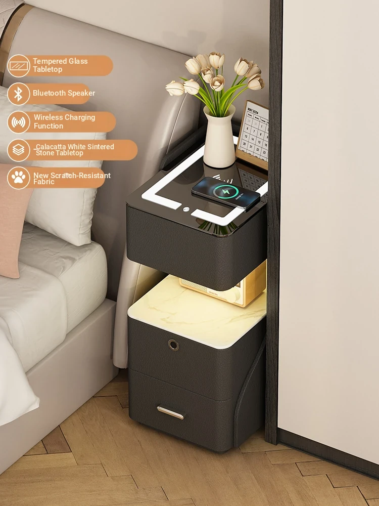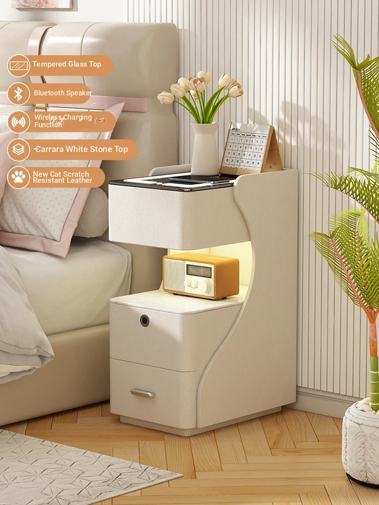 French-Style Bedroom Nightstand with Fingerprint Lock - Ultra Slim 4-Drawer Cabinet, Perfect for Sofa Side in Living Room