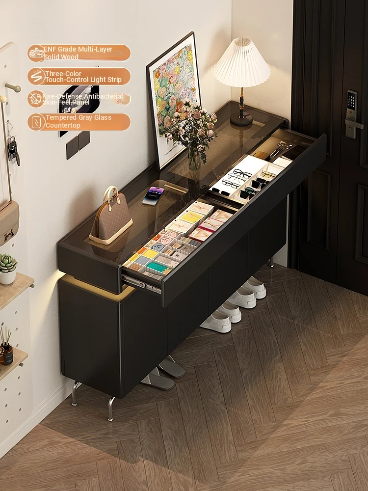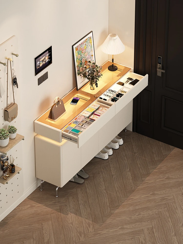 Cream-Style Solid Wood Shoe and Storage Cabinet - Large, Wall-Mounted, Indoor Organizer with Deep Drawers for a Clutter-Free Home