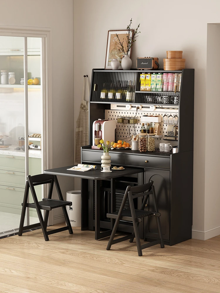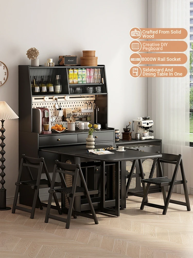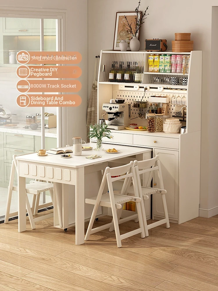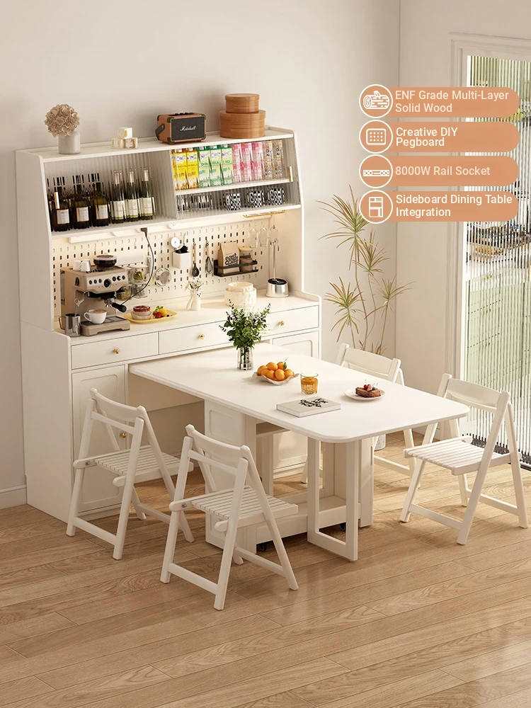 2025 New Elegant Double-Layer Sideboard with Dining Table Integration - Pure Solid Wood Storage Cabinet for Small Spaces