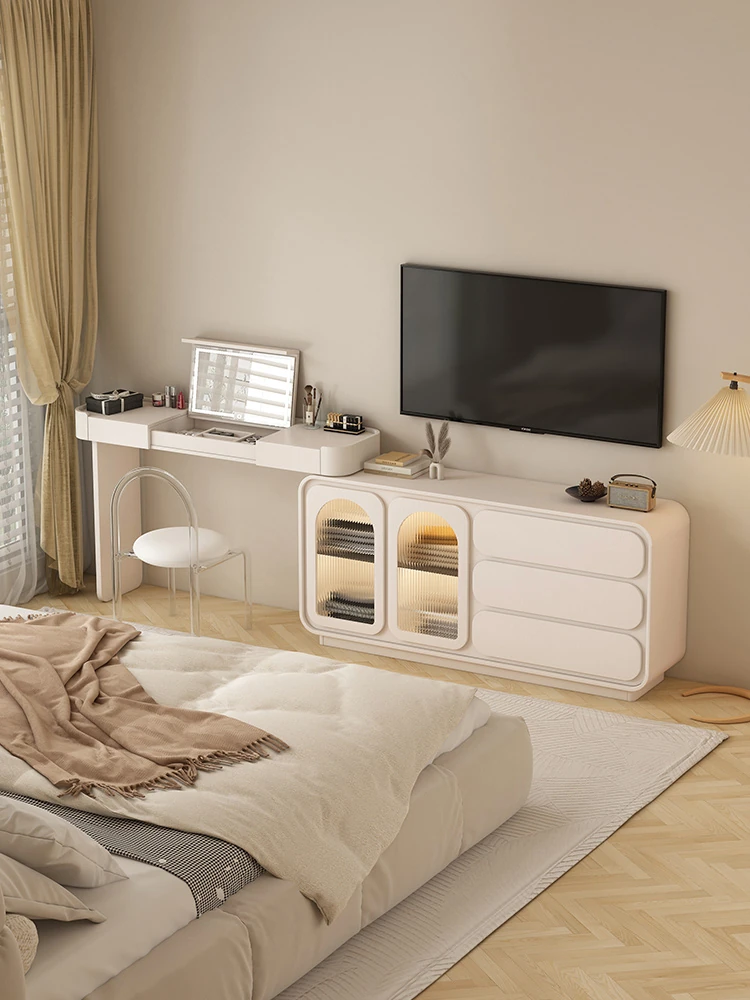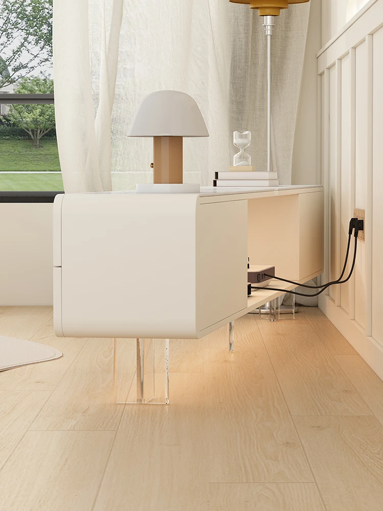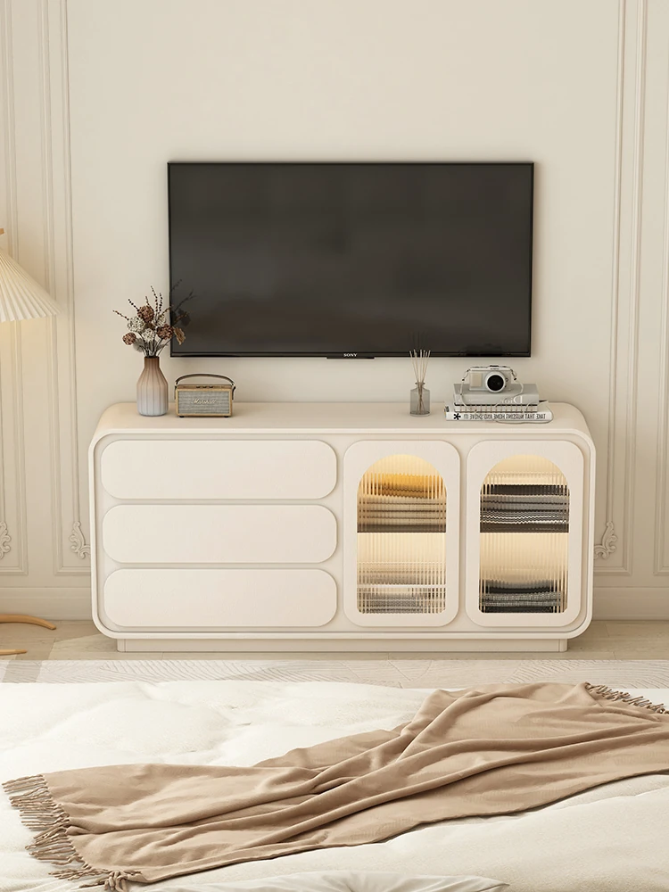 French-Style Finished Bedroom TV Stand - Modern Minimalist Floor Cabinet, Dual-Layer Design with Hidden Outlets for a Sleek Look