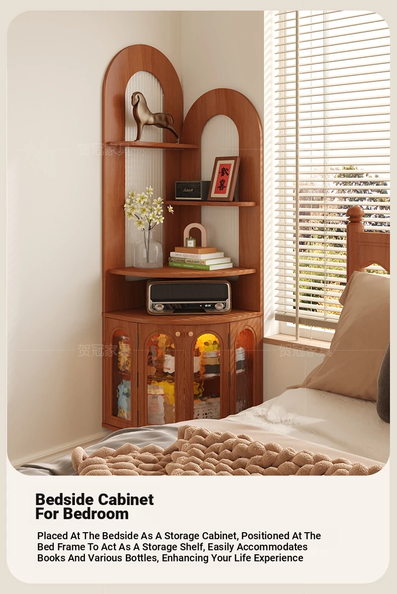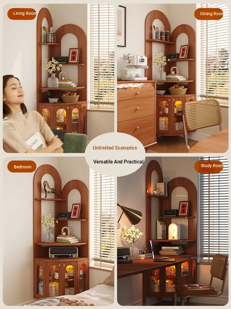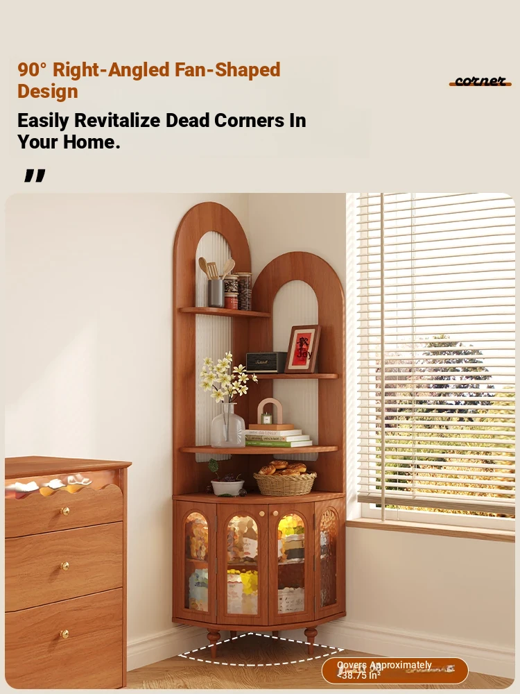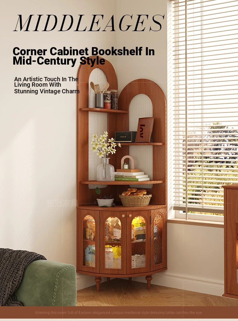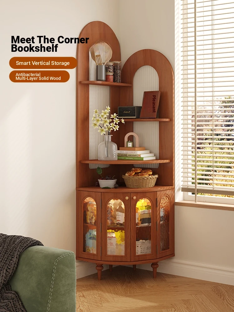 Antique-Style Solid Wood Corner Bookshelf & Wall-Mounted Display Unit – Elegant French-Inspired Home Furniture, Perfect for Living Room Decor or Storage.