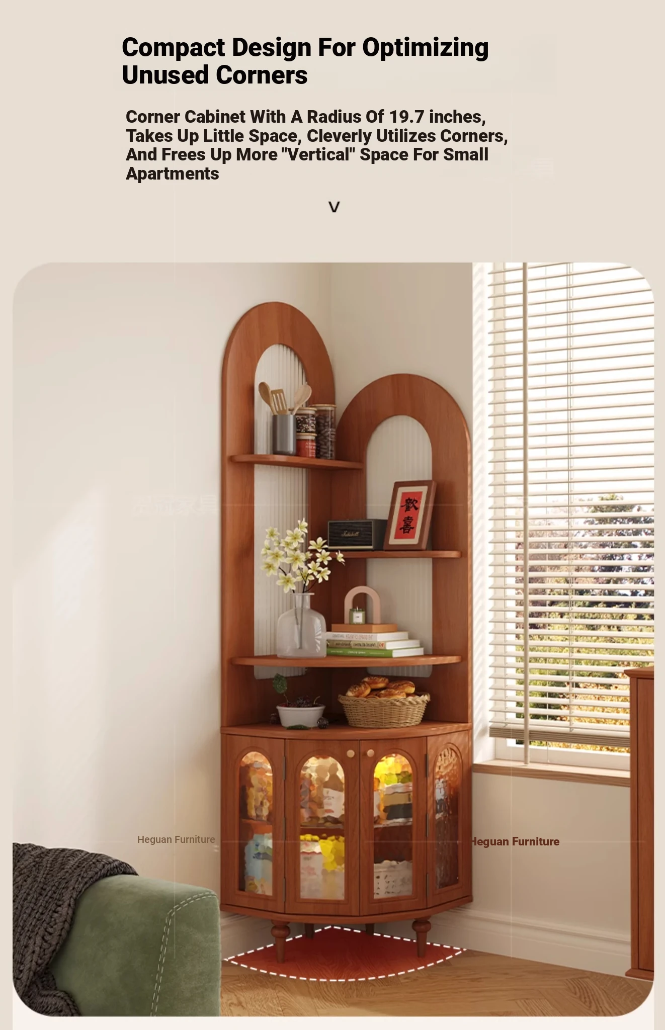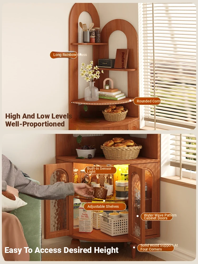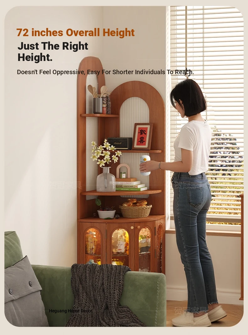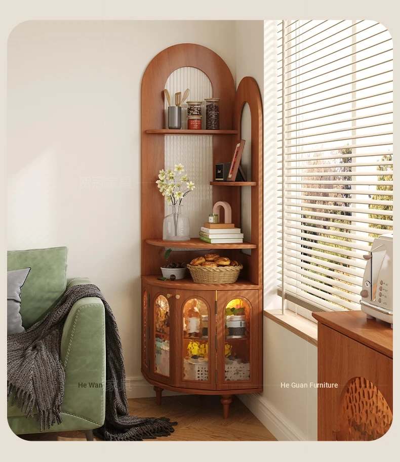Antique-Style Solid Wood Corner Bookshelf & Wall-Mounted Display Unit – Elegant French-Inspired Home Furniture, Perfect for Living Room Decor or Storage.