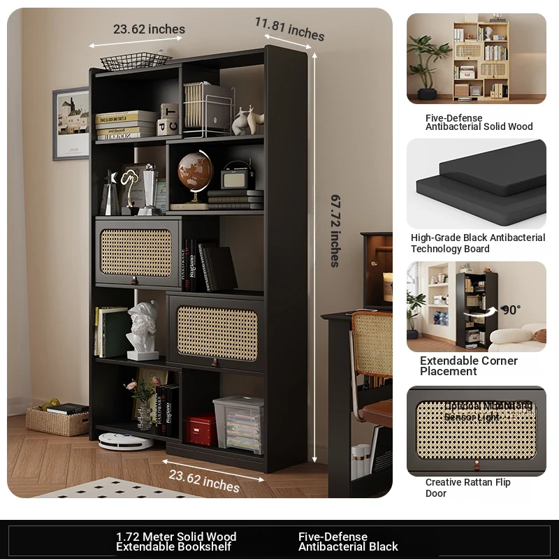 67.72 in solid wood telescopic corner bookcase [cedar wood five anti-bacterial Black]]