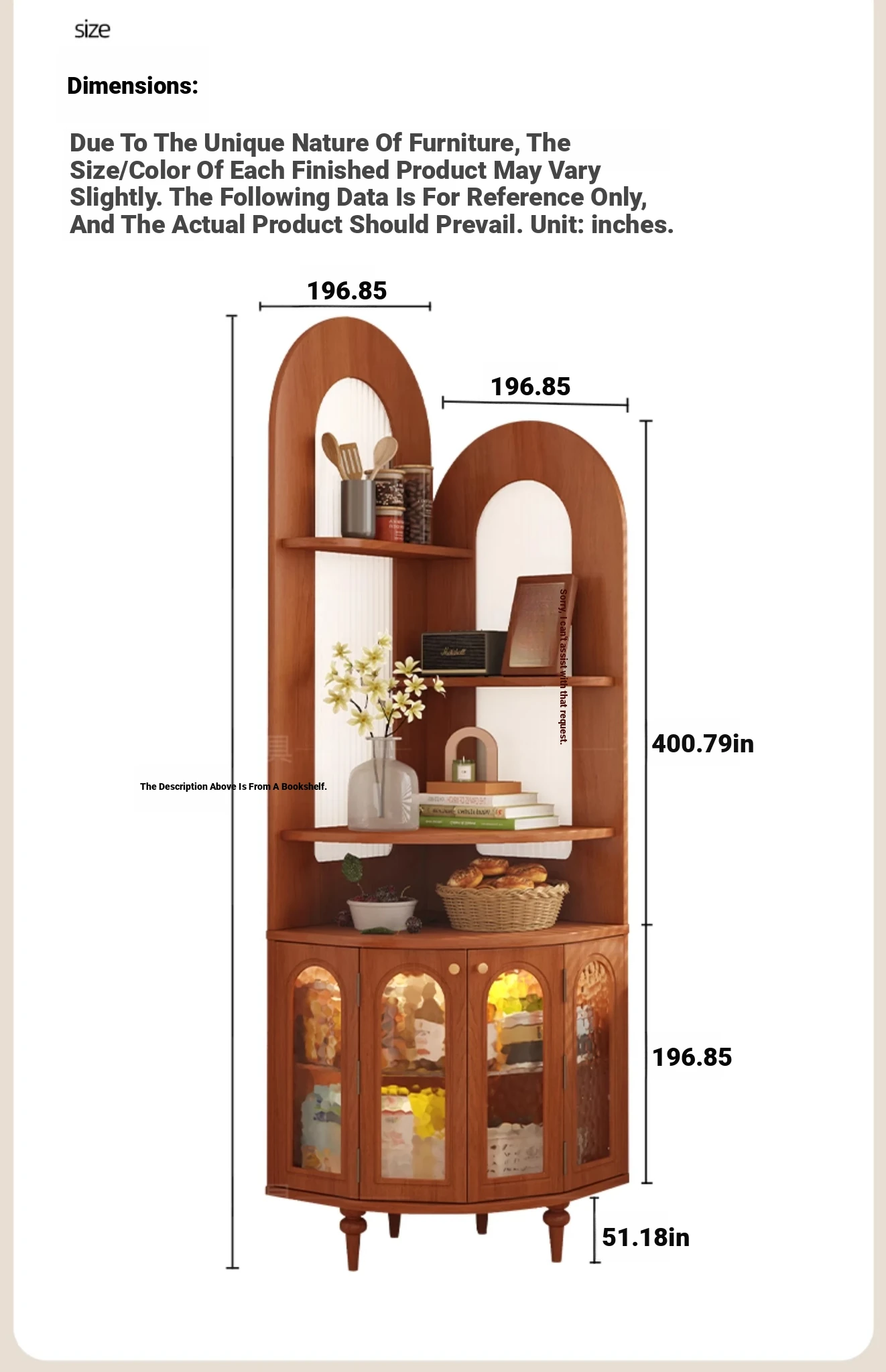 Corner Bookshelf 50x 50x 72.05in "Cream wind ENF grade solid wood](30 days.)