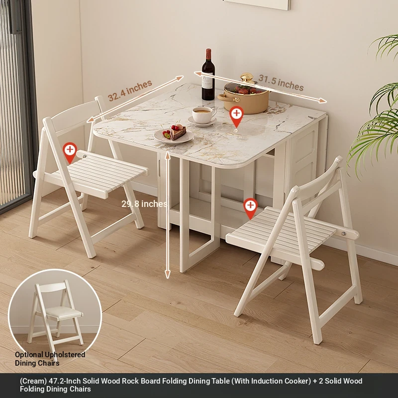 47.24 in solid wood rock board Foldable dining table [cream] + Induction cooker + solid wood Foldable dining chair * 2