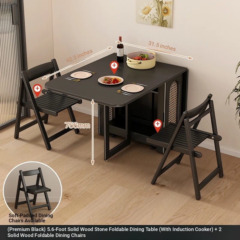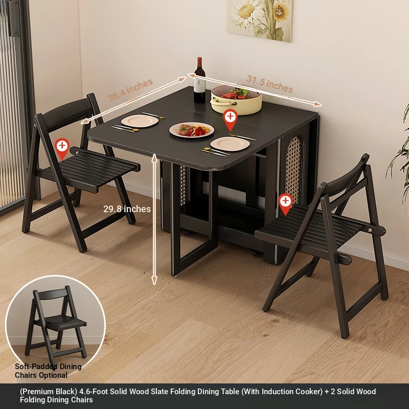 55.12 in solid wood rock plate Foldable dining table [Classy Black] + Induction cooker + solid wood Foldable dining chair * 2