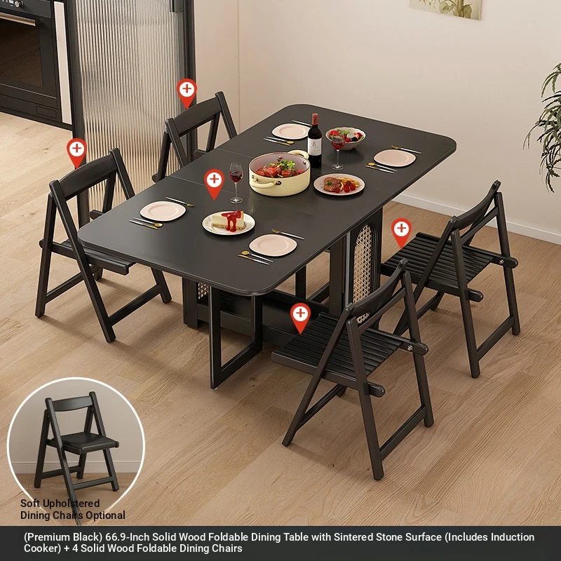 66.93 in solid wood rock plate Foldable table [Classy Black] + Induction cooker + solid wood Foldable dining chair * 4