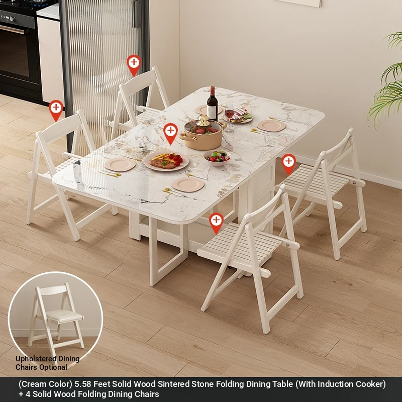 55.12 in solid wood rock plate Foldable table [cream] + Induction cooker