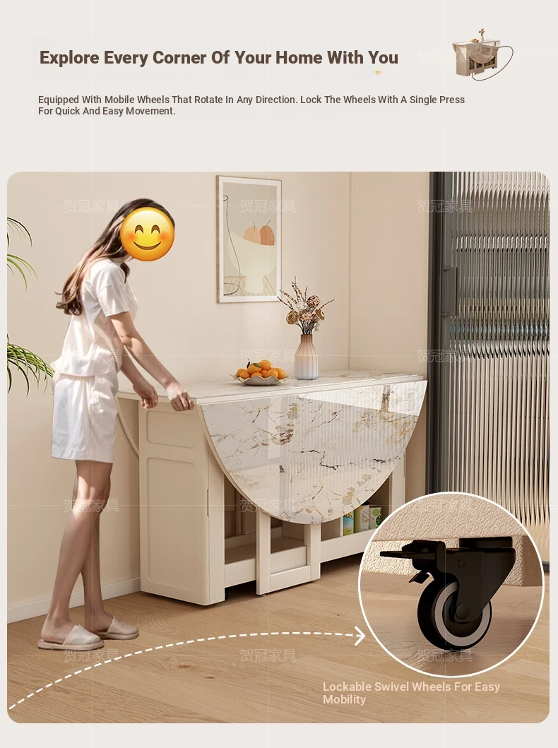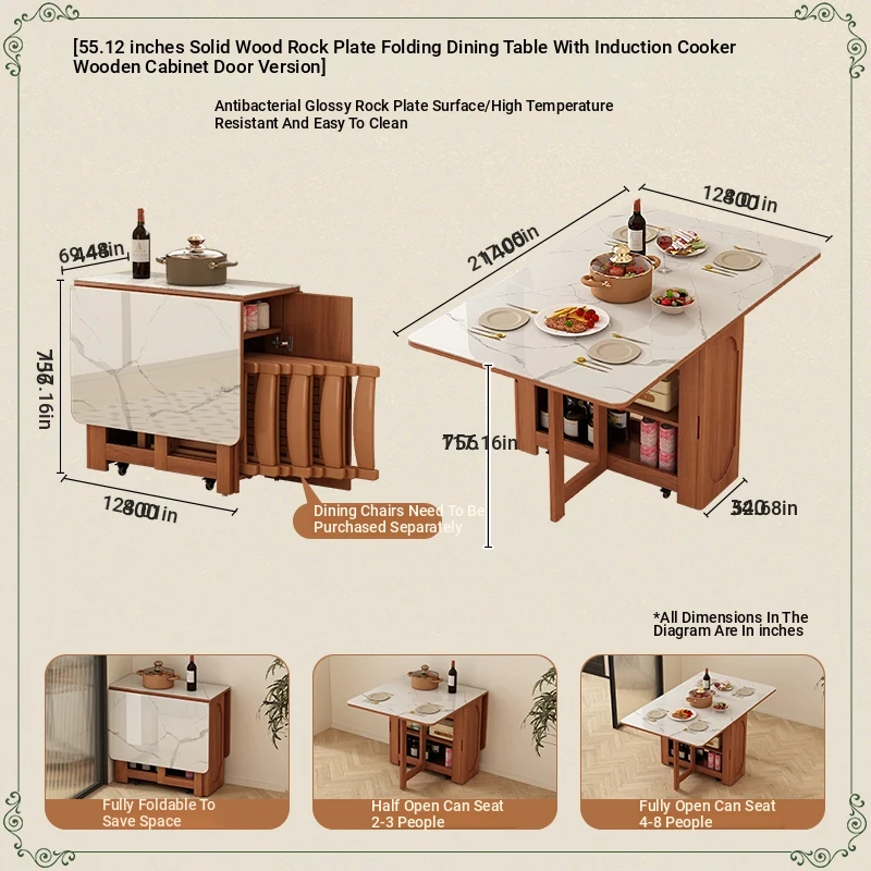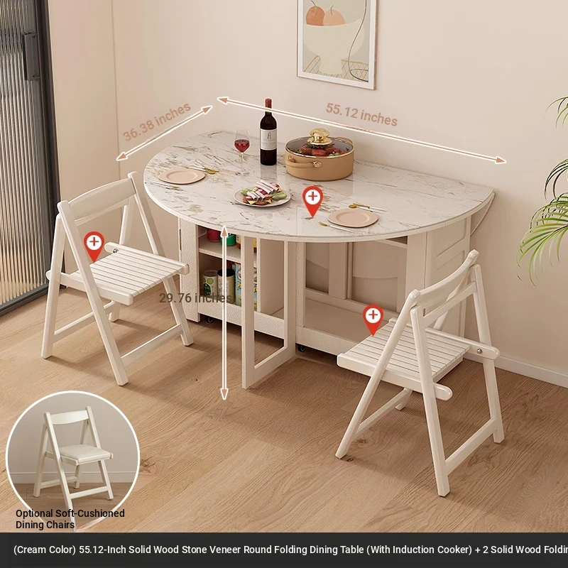 55.12 in solid wood rock plate Foldable dining table [glass door + cream] + Induction cooker
