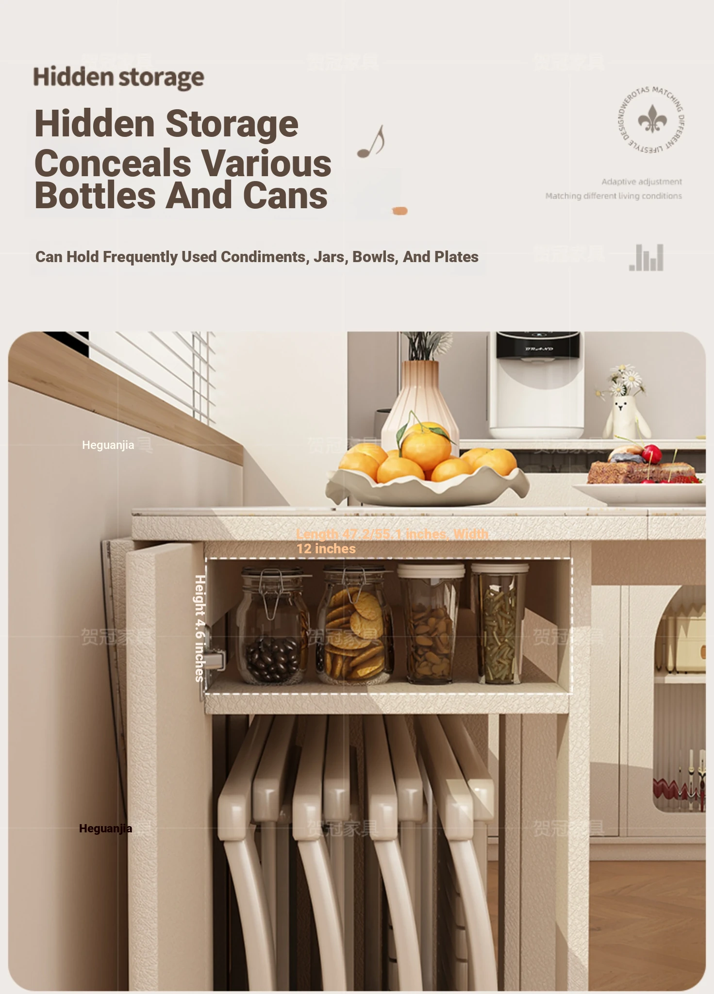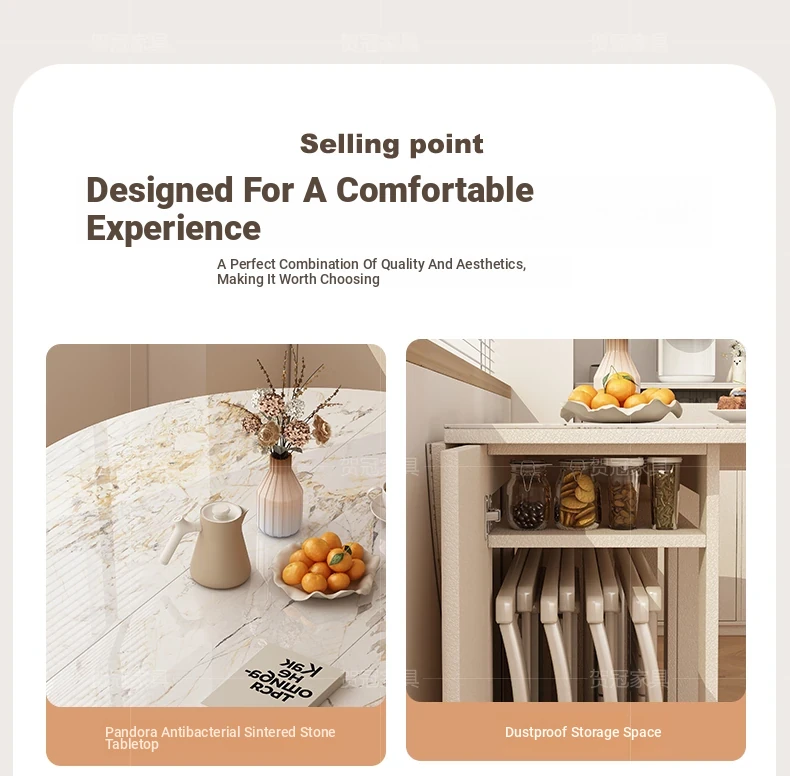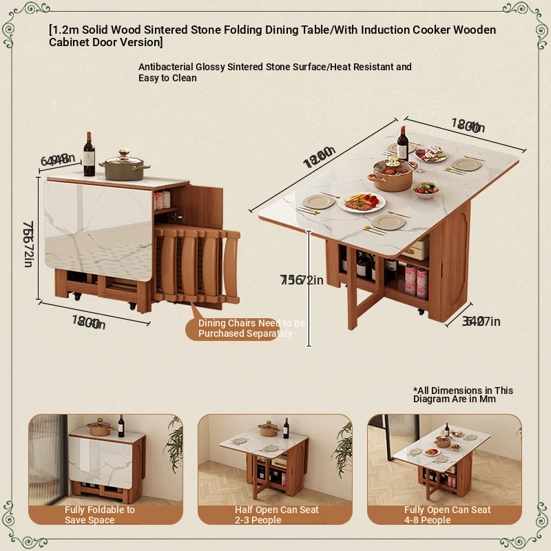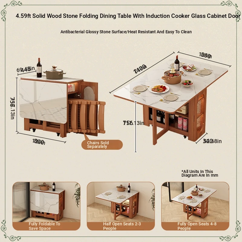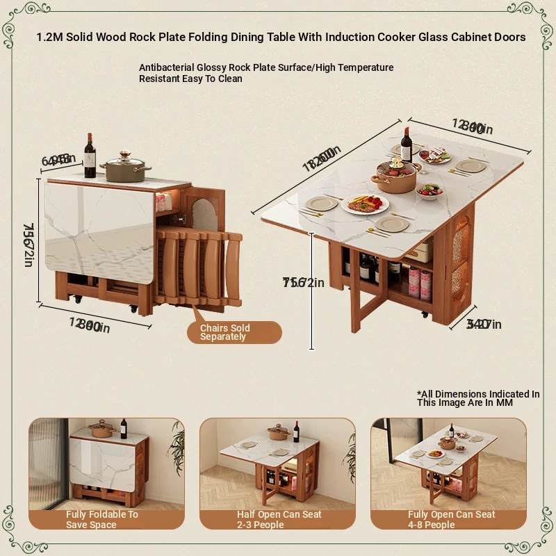 47.24 in solid wood rock plate Foldable dining table [glass door + cream] + Induction cooker