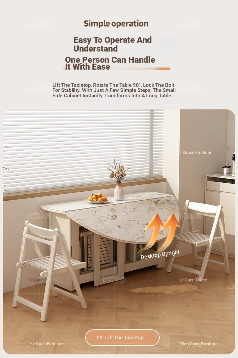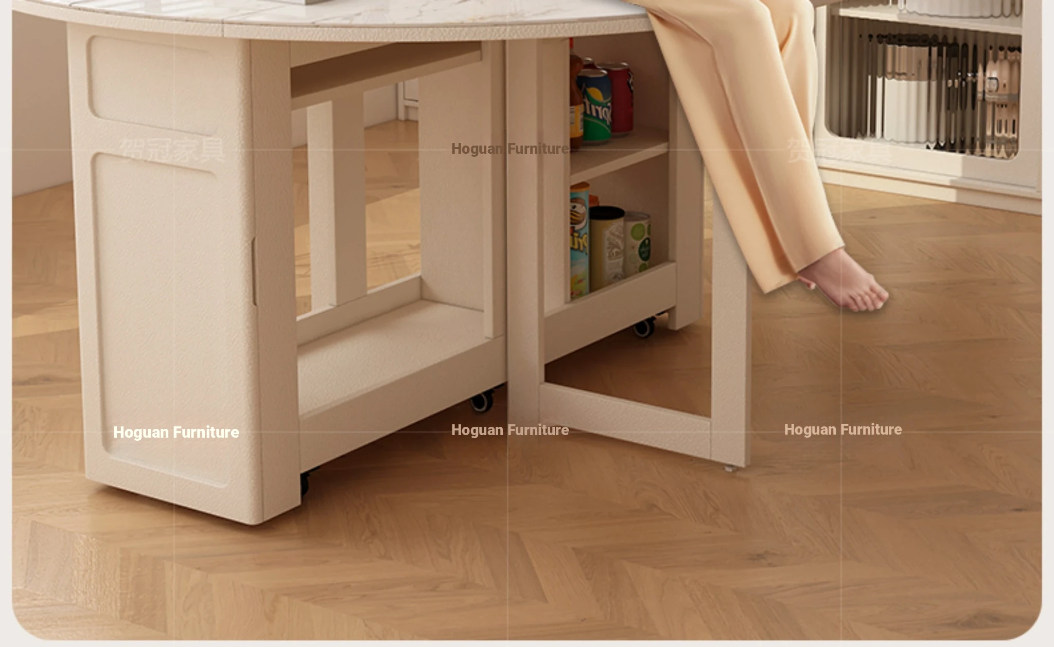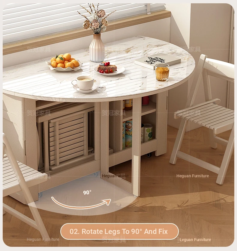 47.24 in solid wood rock plate Foldable dining table [glass door + cream] + Induction cooker