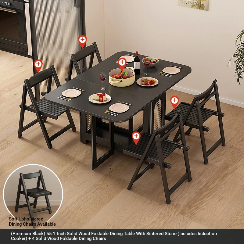 55.12 in solid wood rock plate Foldable table [Classy Black] + Induction cooker + solid wood Foldable dining chair * 4