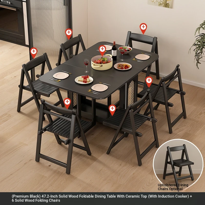 47.24 in solid wood rock plate Foldable dining table [Classy Black] + Induction cooker + solid wood Foldable dining chair * 6