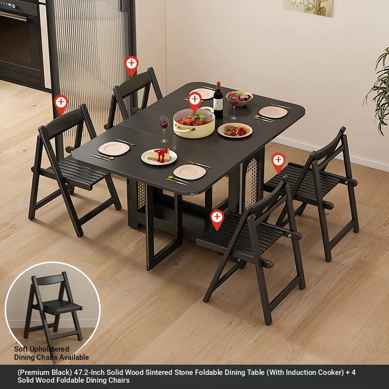 47.24 in solid wood rock plate Foldable table [Classy Black] + Induction cooker + solid wood Foldable dining chair * 4