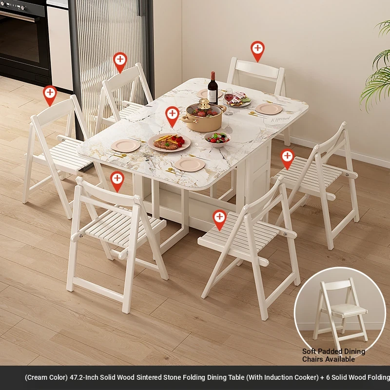 47.24 in solid wood rock board Foldable table [cream] + Induction cooker + solid wood Foldable dining chair * 6