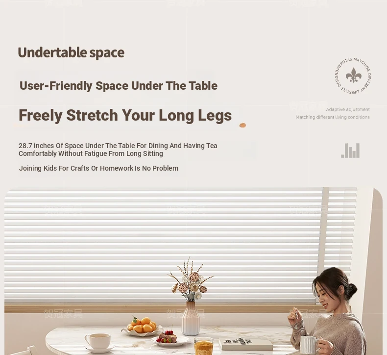 55.12 in solid wood rock plate round Foldable dining table [skin feeling leather cream] + Induction cooker + Foldable dining chair * 6