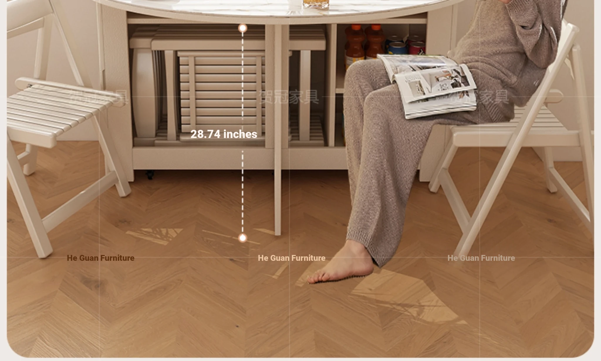 47.24 in solid wood rock plate round Foldable dining table [skin feeling leather cream] + Induction cooker + Foldable dining chair * 4