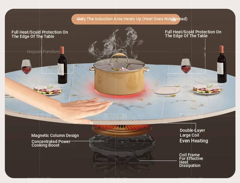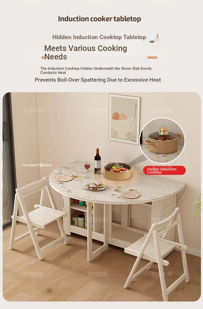 Compact Folding 6-Person Dining Table with Built-in Induction Cooker - Perfect for Small Spaces and Hot Pot Meals