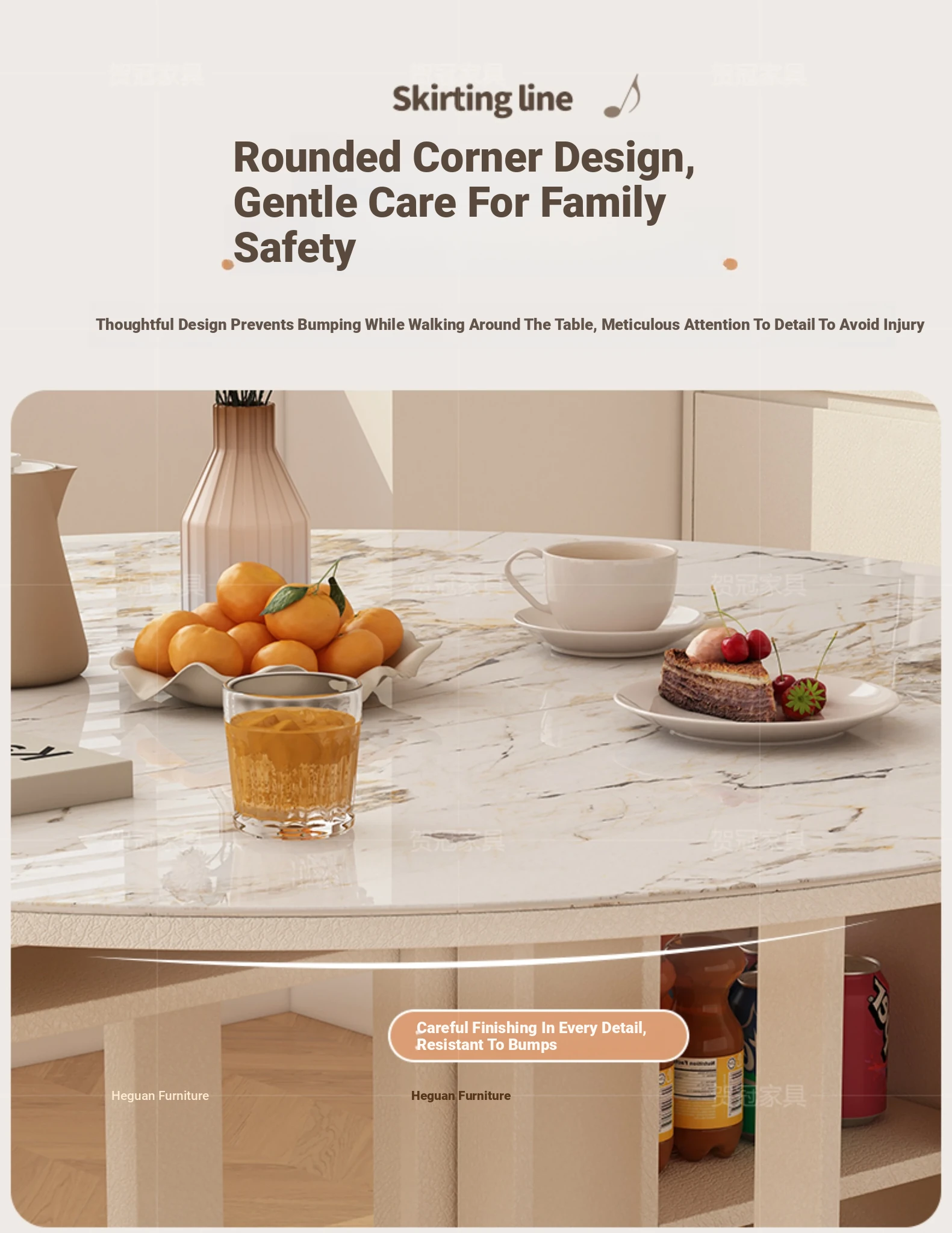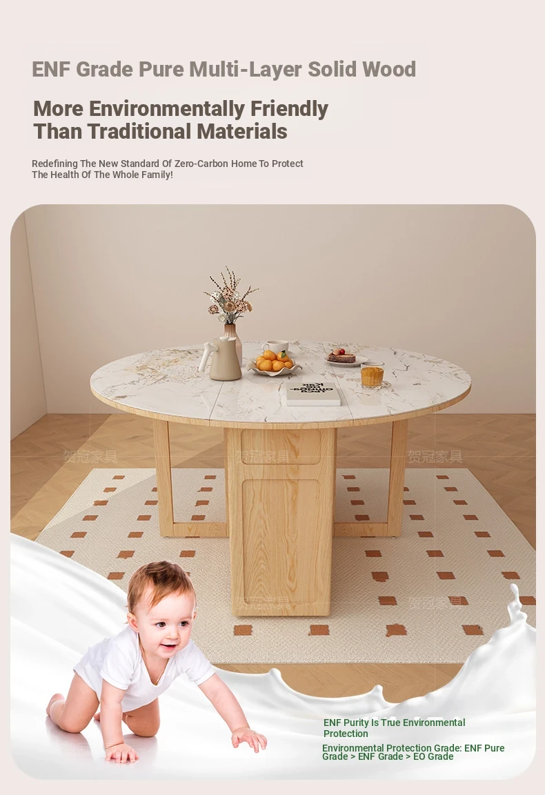 47.24 in solid wood rock plate round Foldable dining table [skin feeling leather cream] + Induction cooker