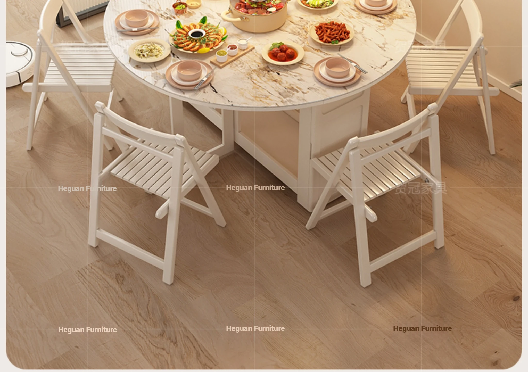 47.24 in solid wood rock plate round Foldable dining table [skin feeling leather cream] + Induction cooker + Foldable dining chair * 6