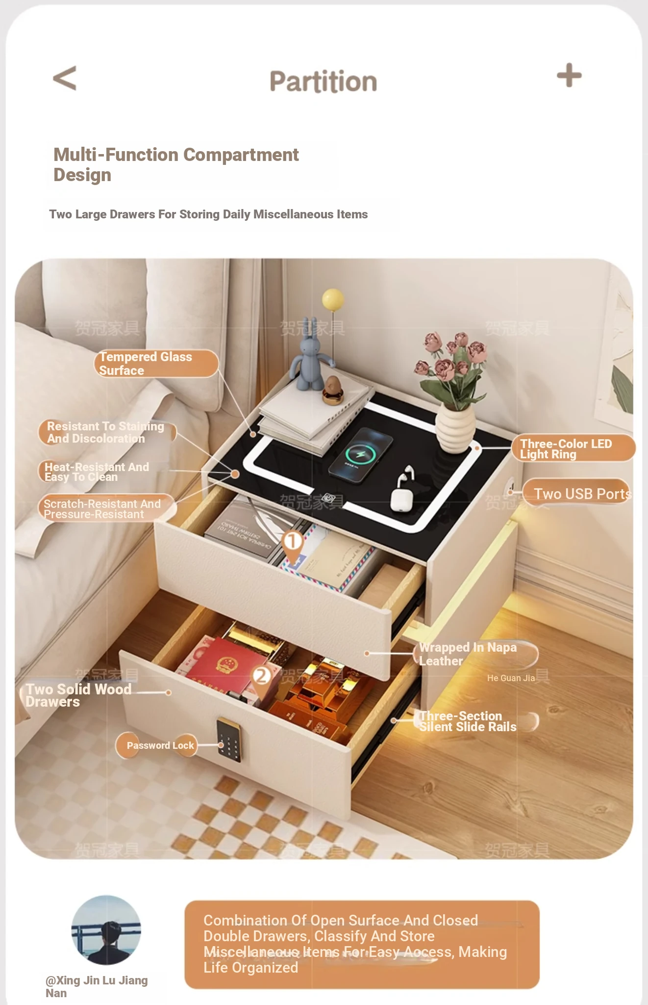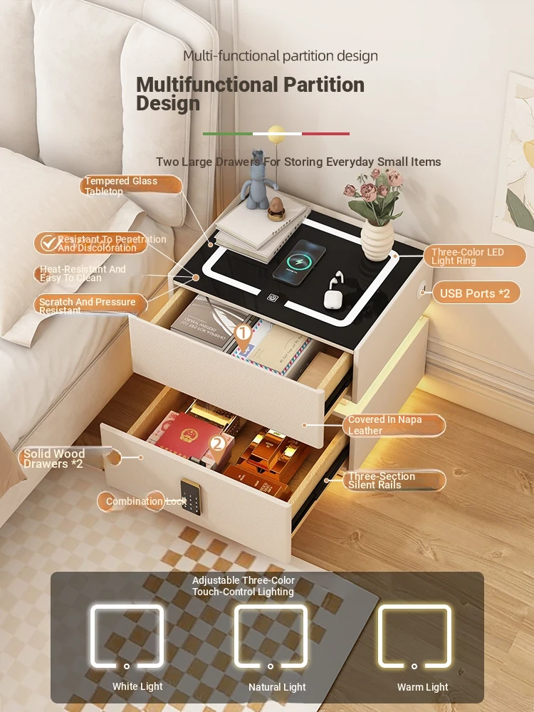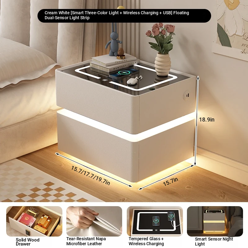 Cream White [intelligent three-color lamp + wireless charge + USB + Audio + combination lock] suspension double Sensor lamp belt