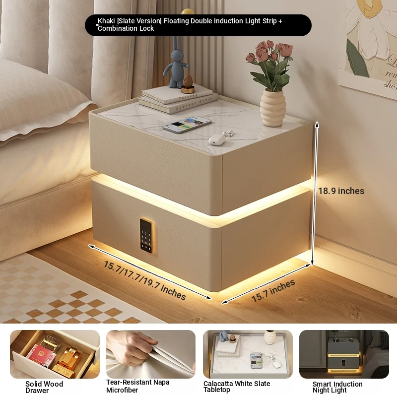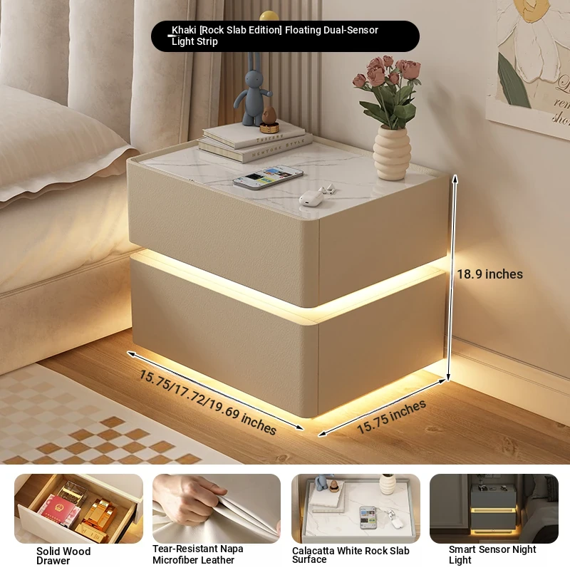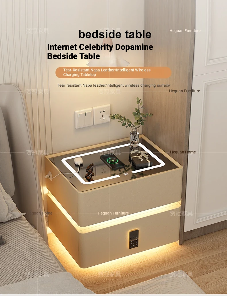 Dopamine-Inspired Nightstand - Trendy Soft Khaki Sofa Side Cabinet for Hotels and Stylish Airbnb Decor