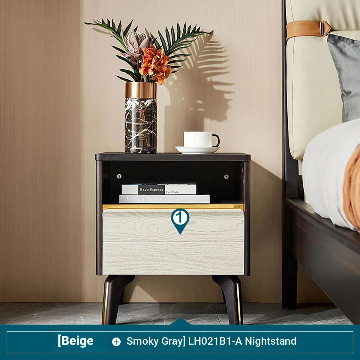 [Creamy-white + smoky color] LH021B1-A bedside table