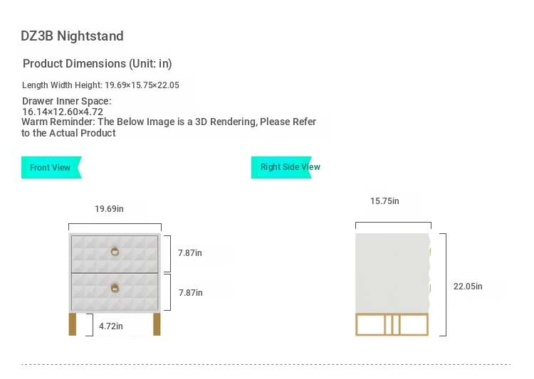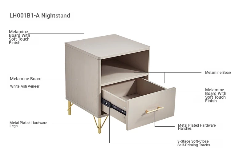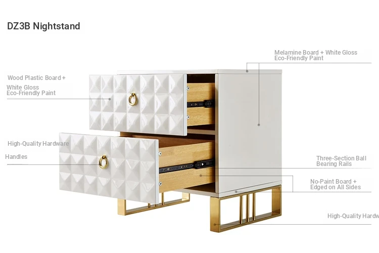 [White + Tuhao Gold] DZ3B Bedside Cabinet [Express + Installation]]
