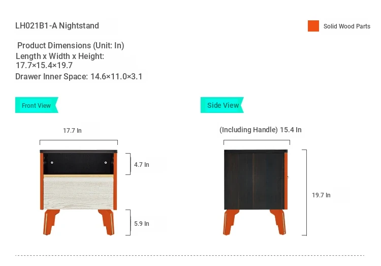 [Walnut color + Gray] JJ3B-A bedside table [Express + installation]]