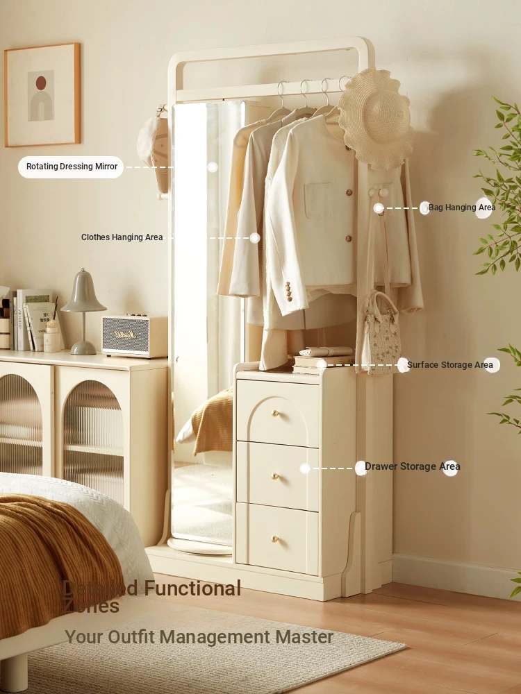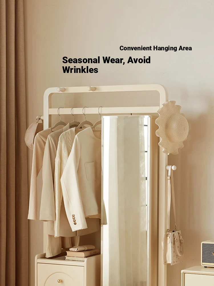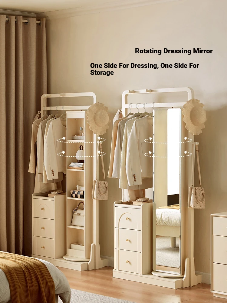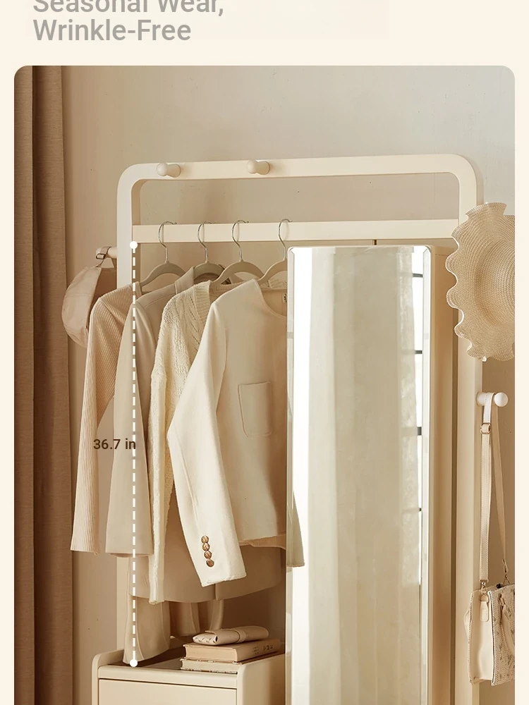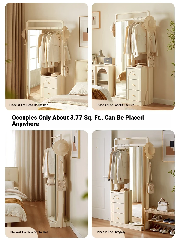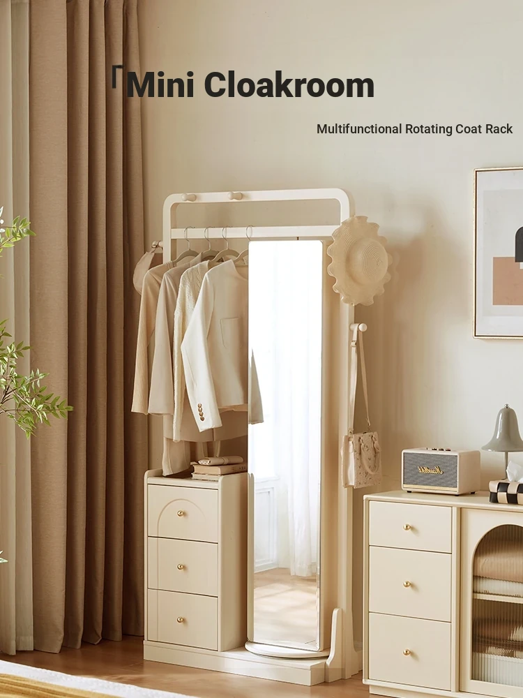 Lins Home Space-Saving Floor Standing Coat Rack with Rotating Dressing Mirror - Stylish Solid Wood Wardrobe Organizer for Bedrooms