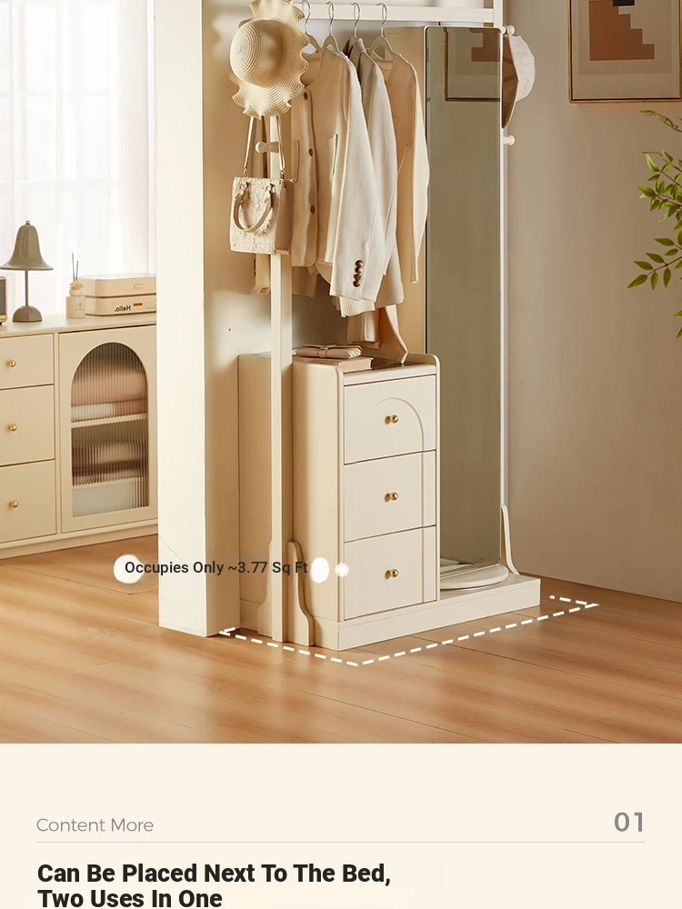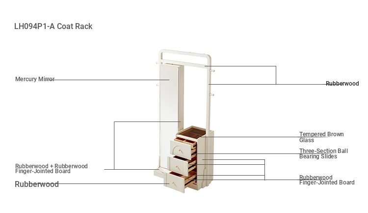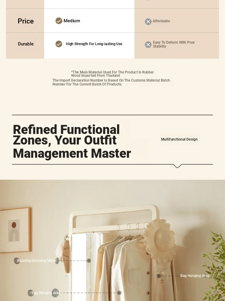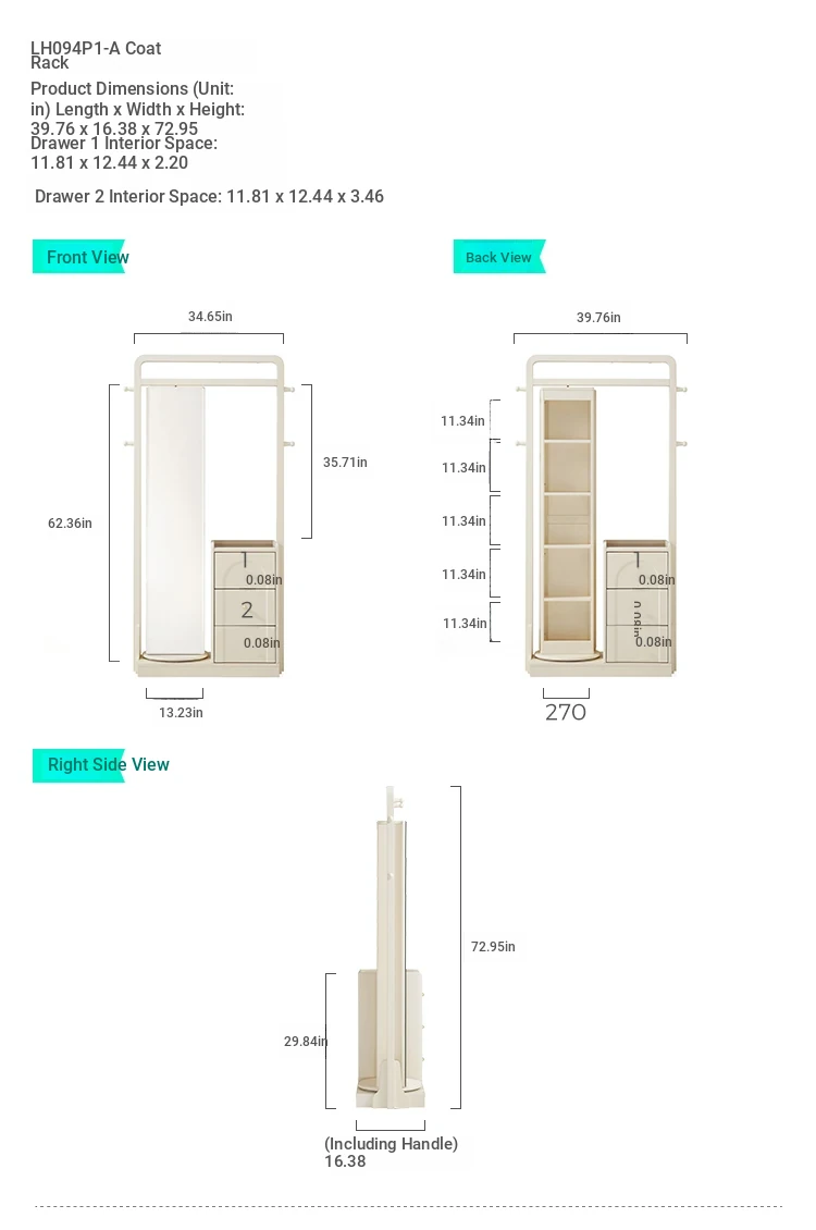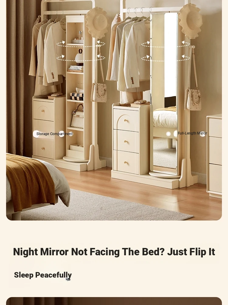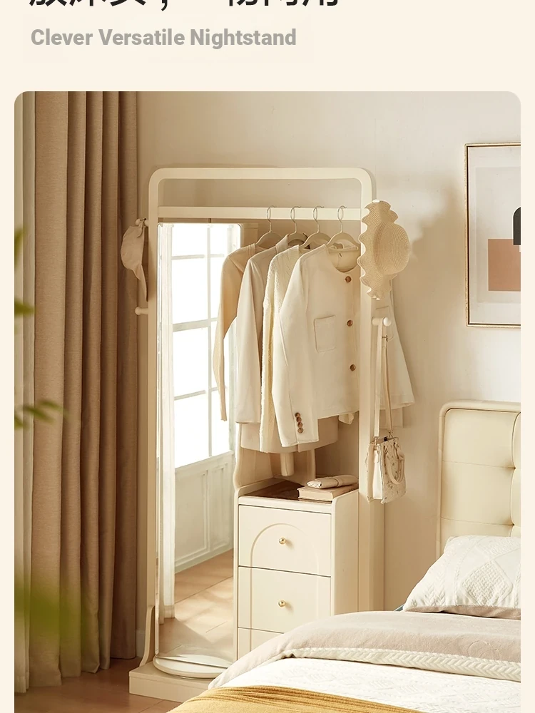 Lins Home Space-Saving Floor Standing Coat Rack with Rotating Dressing Mirror - Stylish Solid Wood Wardrobe Organizer for Bedrooms