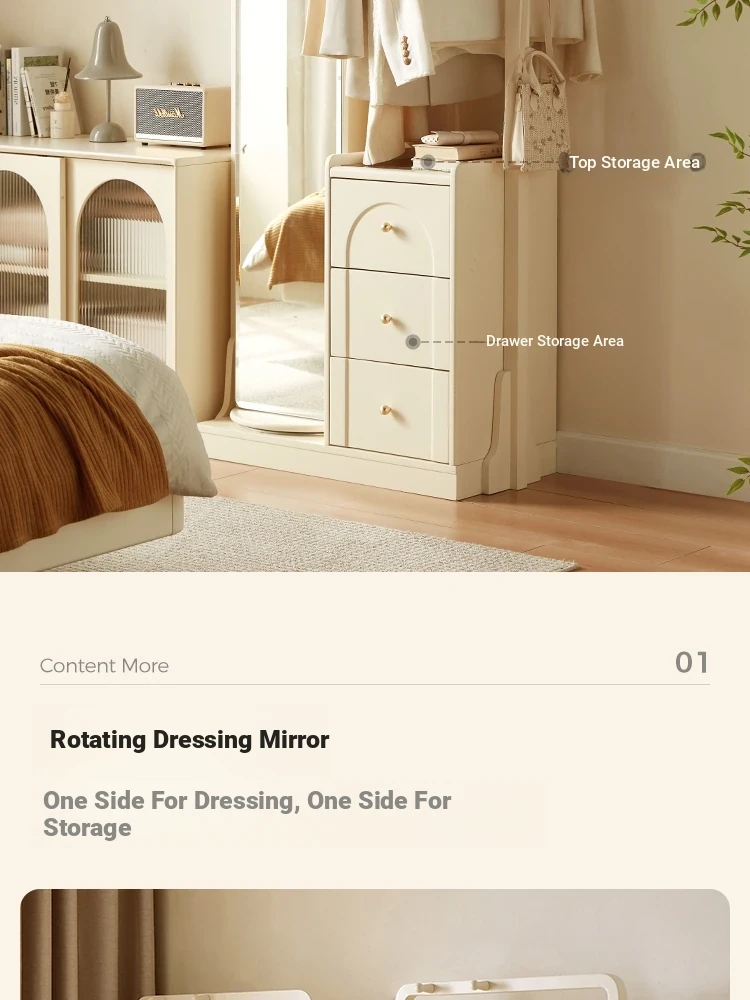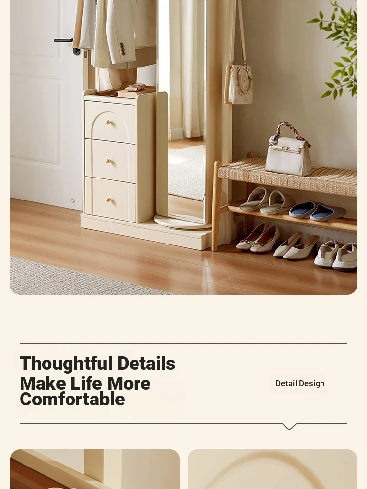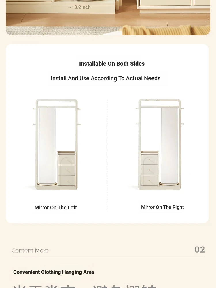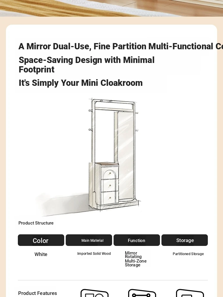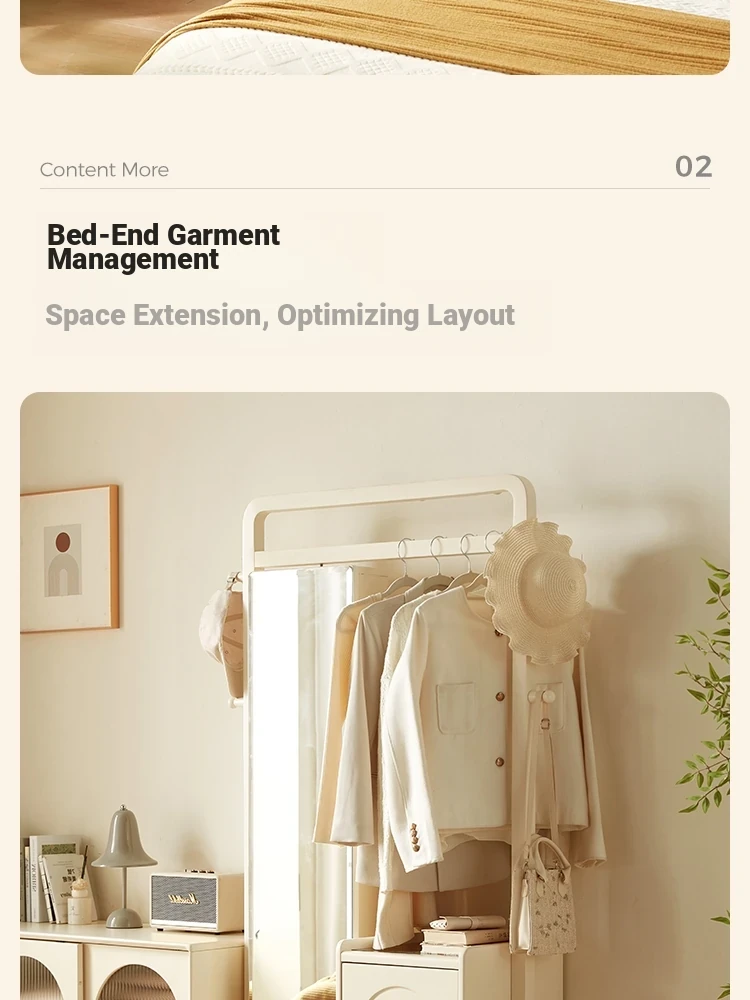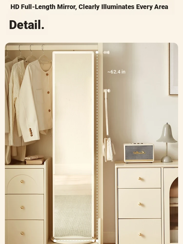 Lins Home Space-Saving Floor Standing Coat Rack with Rotating Dressing Mirror - Stylish Solid Wood Wardrobe Organizer for Bedrooms