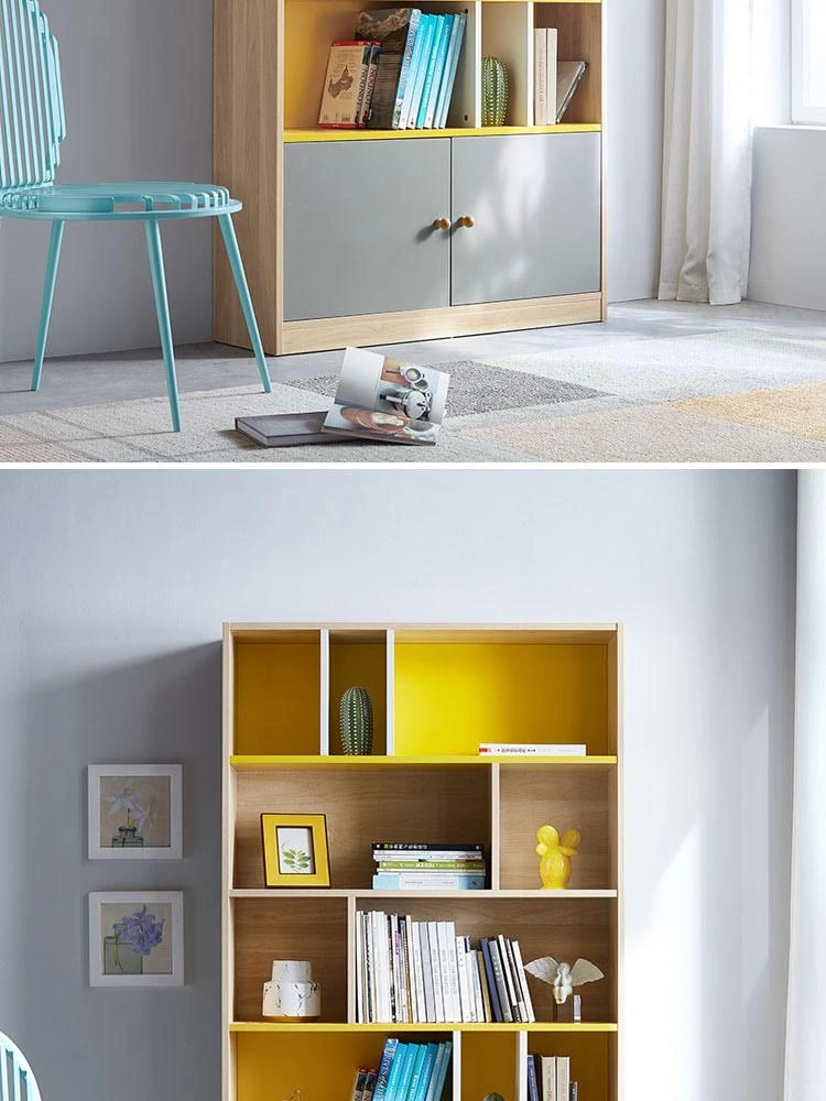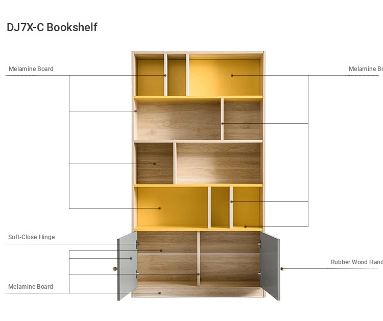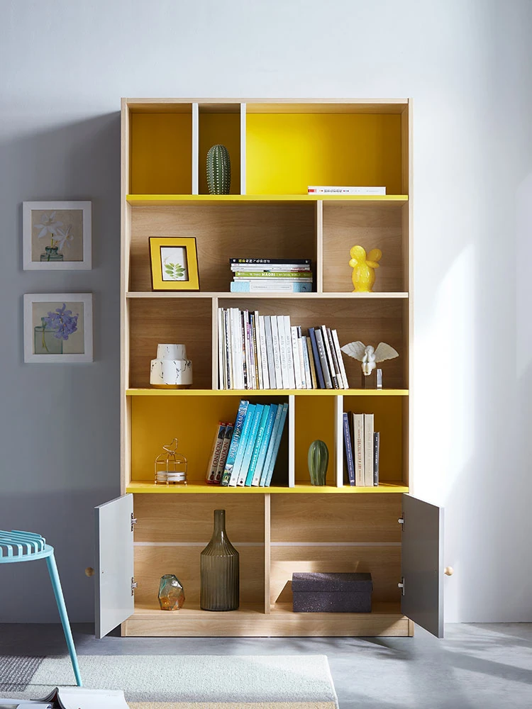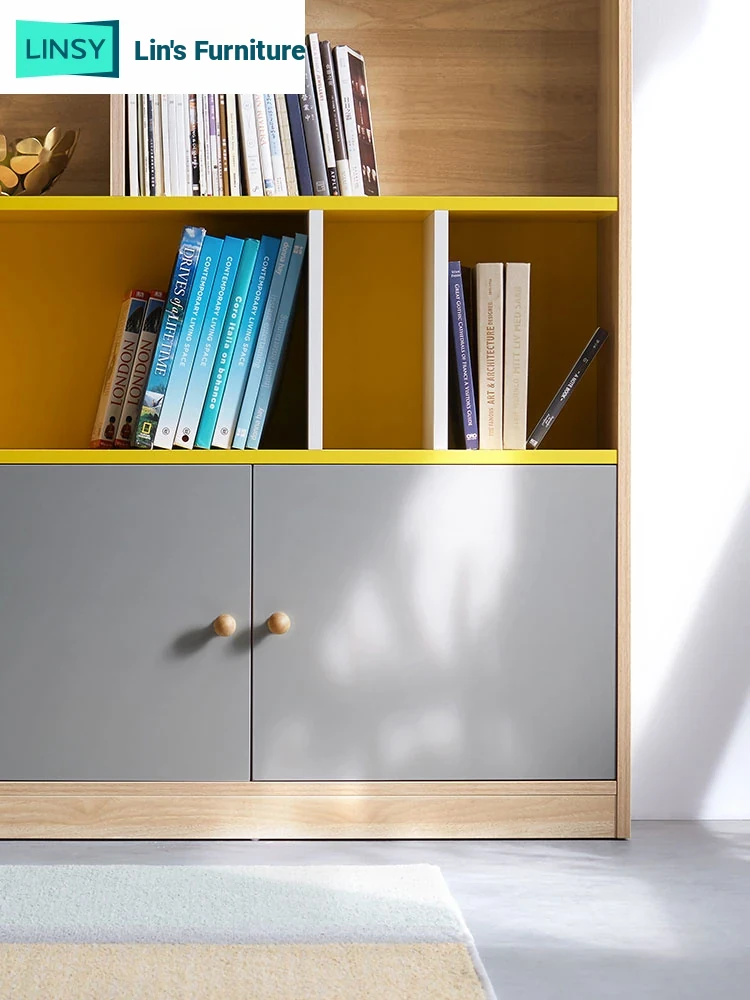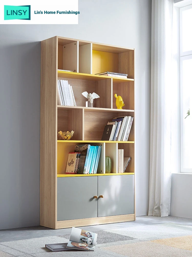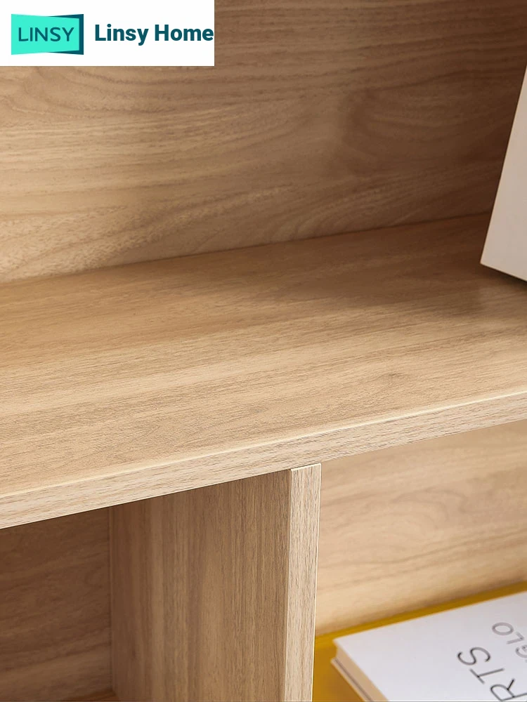 Linsy Modern Minimalist Cube Display Bookcase - Stylish Living Room Storage Cabinet in Natural Wood Finish - DJ7X