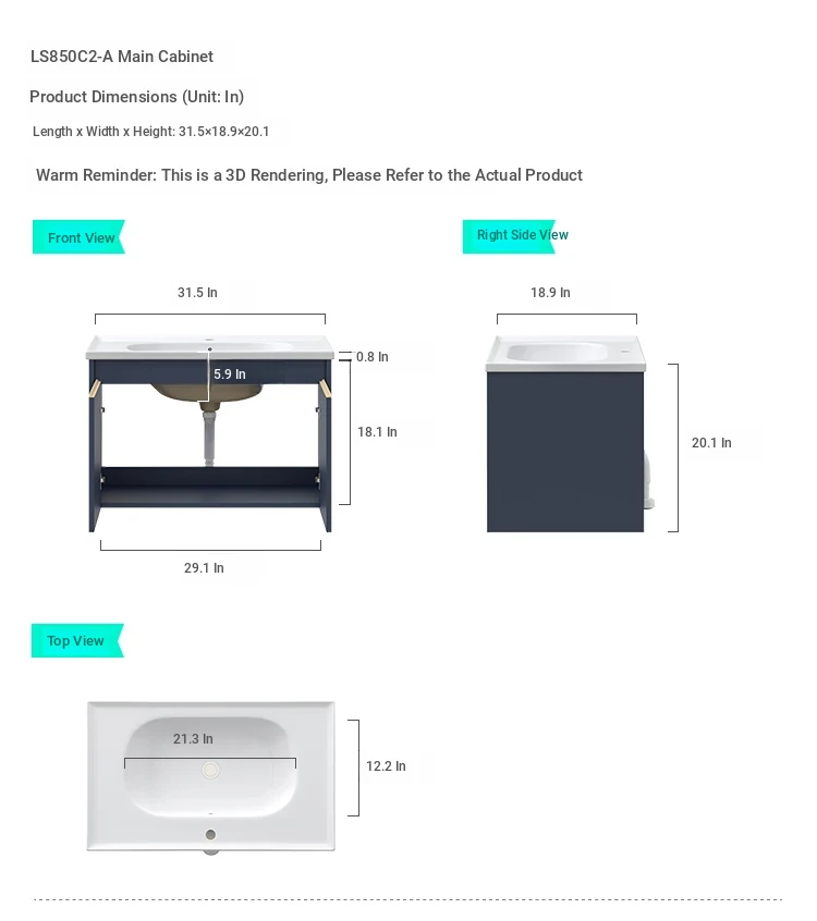 [Blue] LS850C2-A Main Cabinet + LS850C2-A Mirror Cabinet with Light + LS659C10-A Bathroom Cabinet Neutral Water Sink 01 [Express + Installation]]